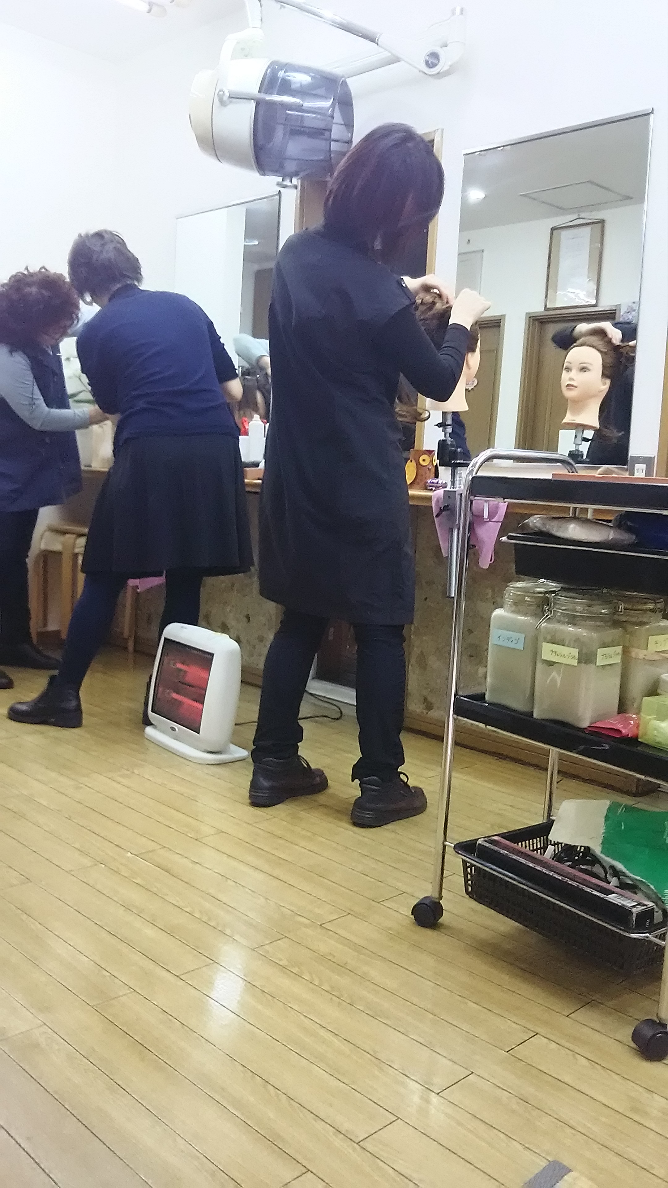 お仕事後はみんなでお勉強会です。それぞれに課題をみつけ、エミ先生に教わりながら作品作り。