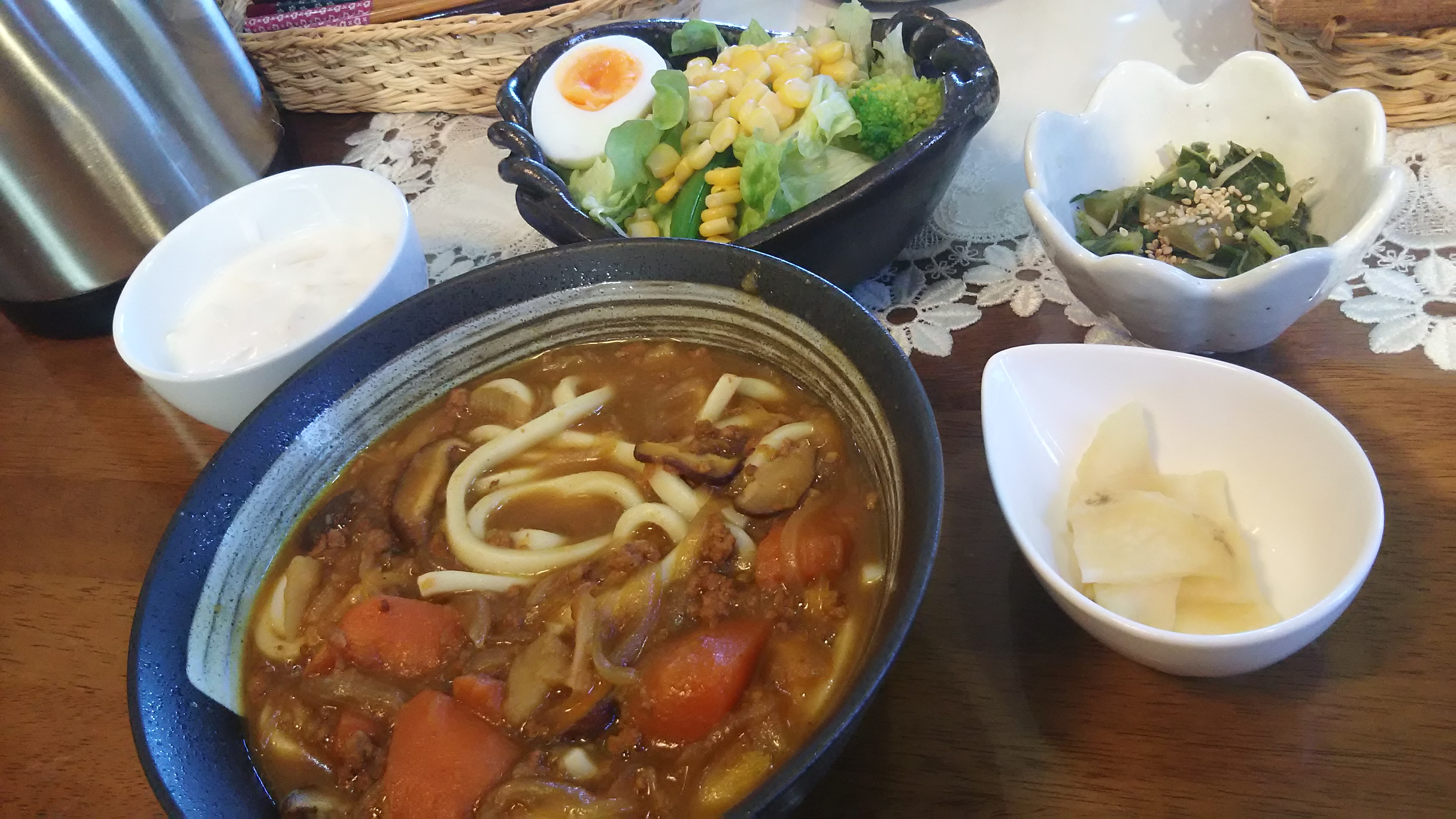 エミ美容室のお客様だけが楽しめる二階にある「エミサロン」でのランチ♪午前中にご予約をいただいたパーマまたはカラーのお客様に無料でご用意させていただいております。この日のメニューはカレーうどんです♪