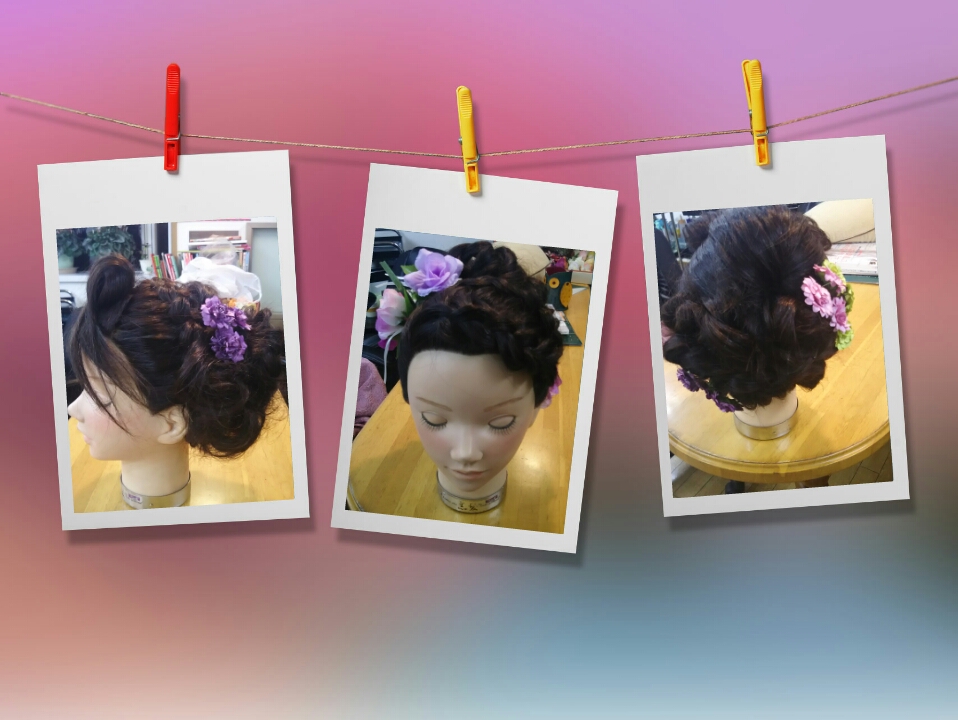 この夜会巻き、エミ先生に厳しく鍛えられ(笑)ピンのさし方やコームの入れ方、本当に厳しく教えてもらえて幸せな私です。先生の仕事が見たくて、役にたたないのに早朝や休日にご予約が入ると自分も出勤してたのを思い出します。