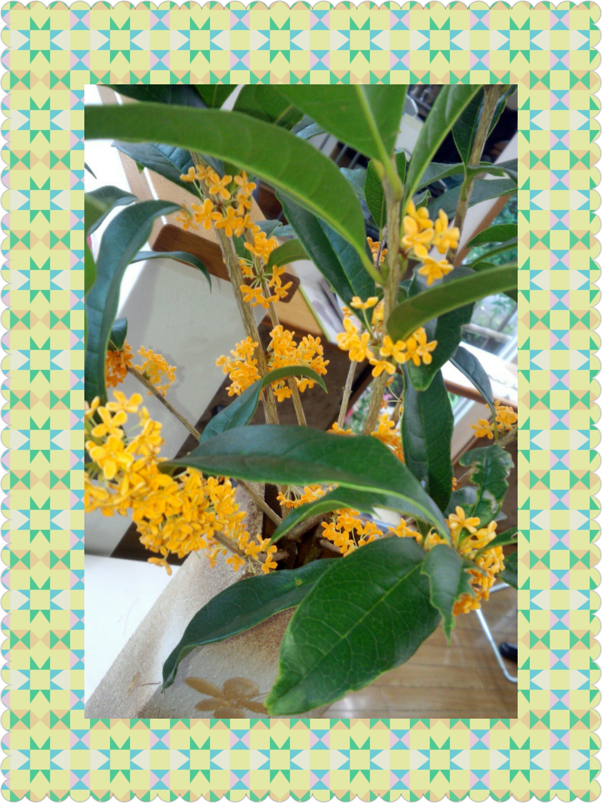 となりのおじさんちにも金木犀があって、エミ先生「ひと枝いただいていいですか?」と交渉に乗り出し、見事ふた枝いただいてきました(笑)さすがです(笑)