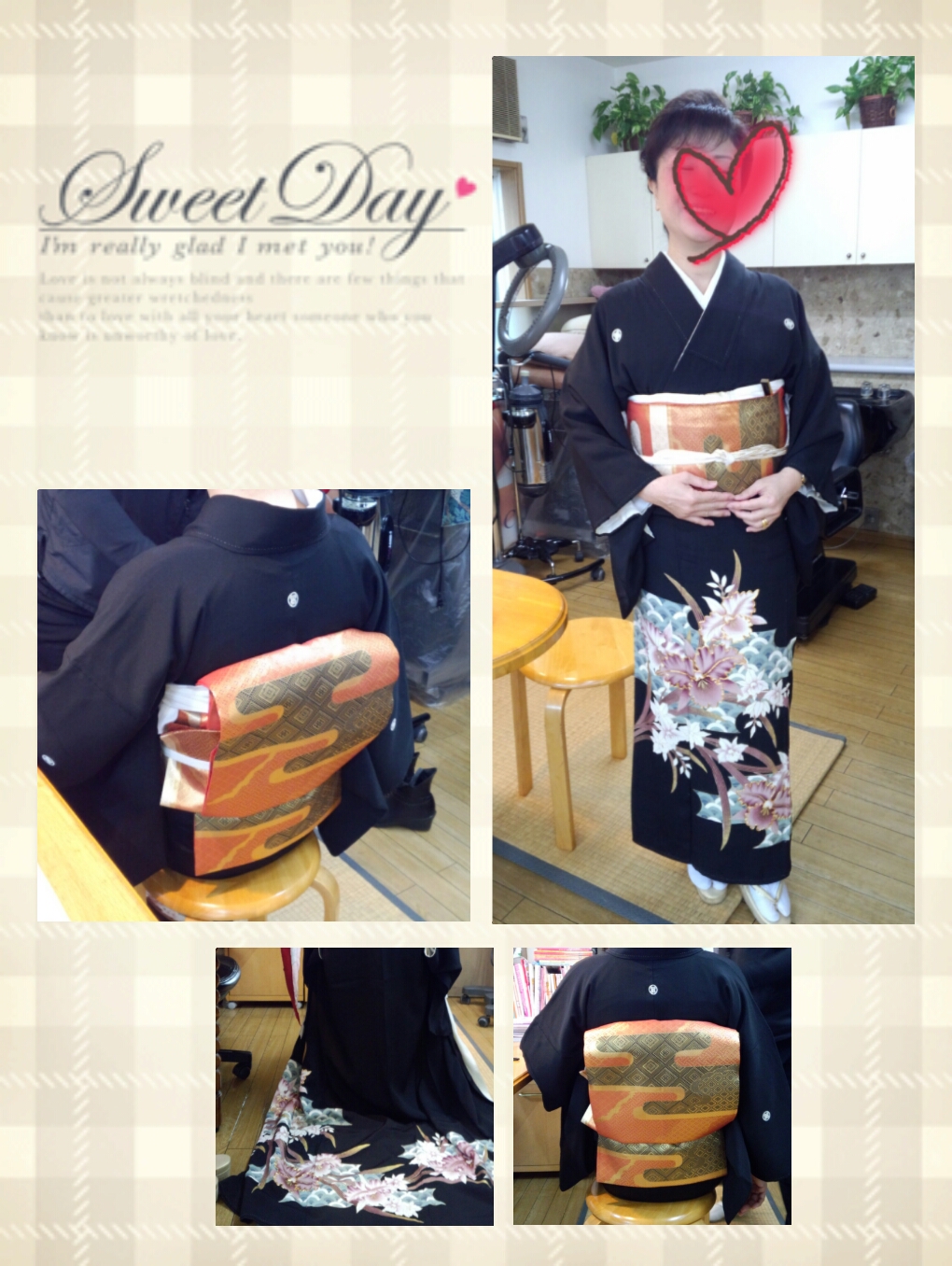 先日、お客様のお嬢様の結婚式がありました。結婚が決まった時から、お髪を伸ばしはじめて色々と計画をしながらいよいよ1ヶ月前に。ですが、お客様にハプニングがおこり大変な事になってしまったのです。入院に車椅子、でもお嬢様のためにも留袖を着て一緒に歩きたい。どんな状況でも顧客様の希望に応えたいエミ先生は、すごかった!