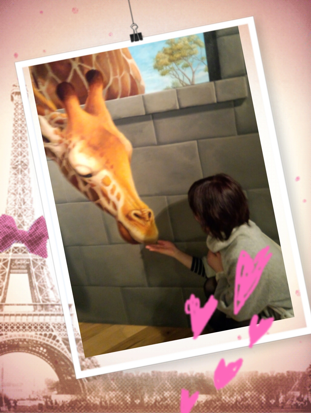 この写真キリンに触っているみたいに見えるけど、実は絵なので平面なんです。写真を撮って楽しむ場所ですね♪忍者や、お化けのコーナーもあってとてもおもしろかった!