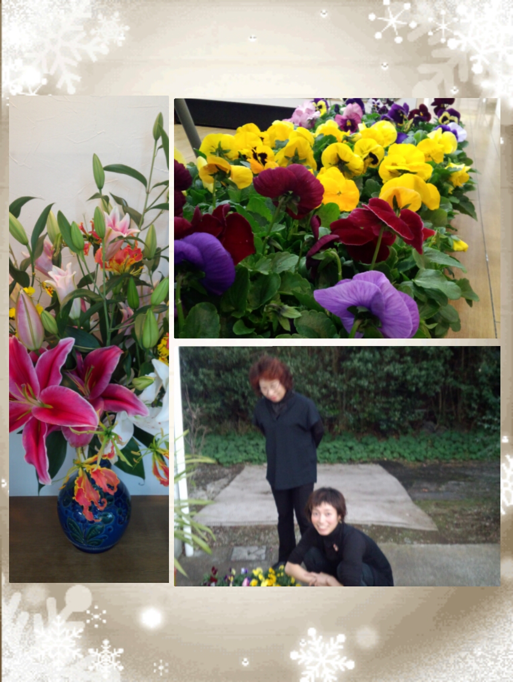 花壇を、本店に続いて冬バージョンの花にかえました♪