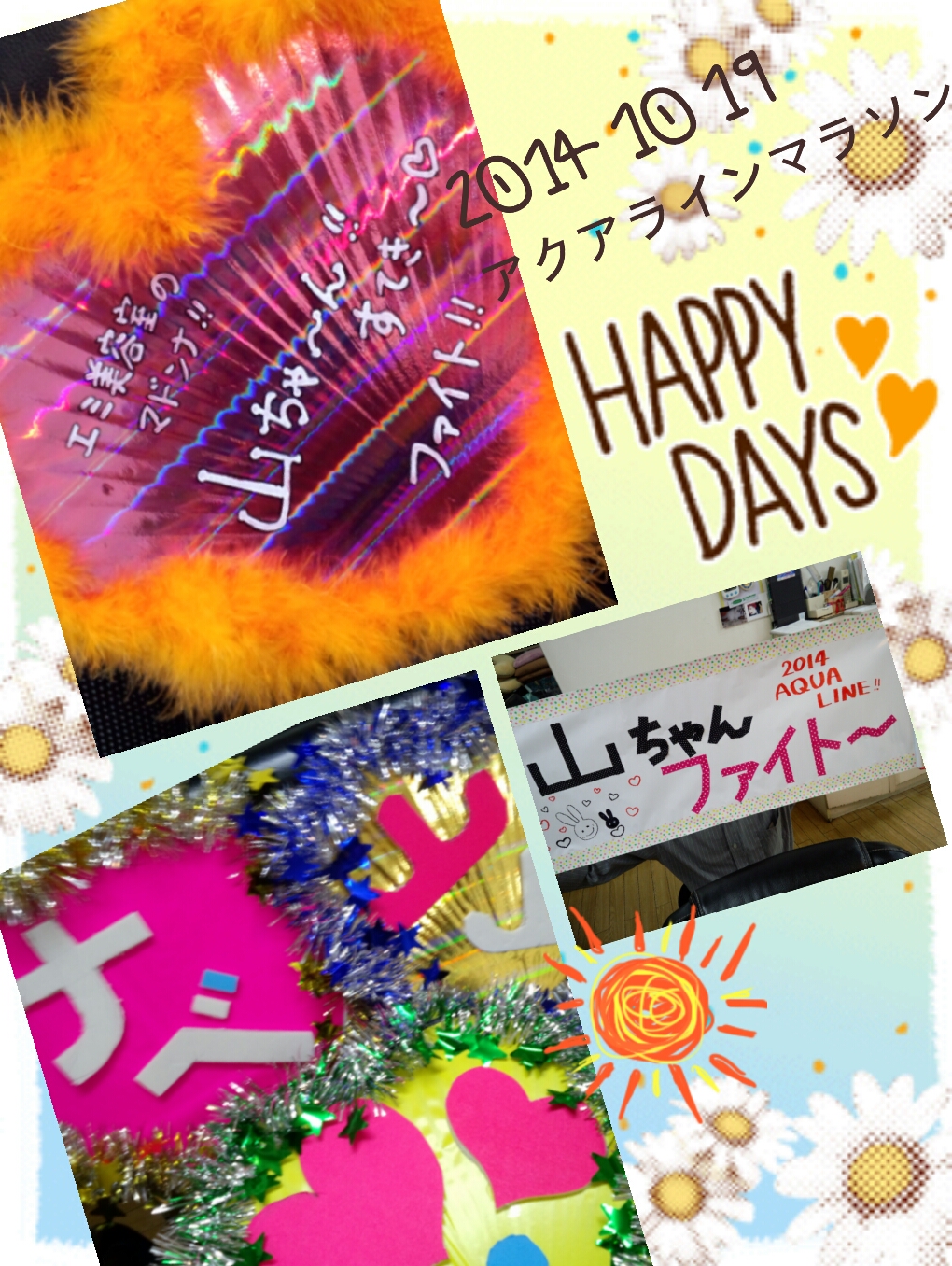 今月19日晴天♪にお客様と一緒にハーフマラソンに挑戦してきました!アクアラインはものすごく気持ち良く、空は青いし海はキラキラして最高でした。とっても苦しかったけれど一緒に走ってくれたお客様、応援にきてくれたお客様、可愛い応援グッズを作ってくれたスタッフ、走る前も後も美味しいものをごちそうしてくれてゴールに帰ってきたわたしを見て泣いてしまった先生、みーんなの想いで完走することができました。