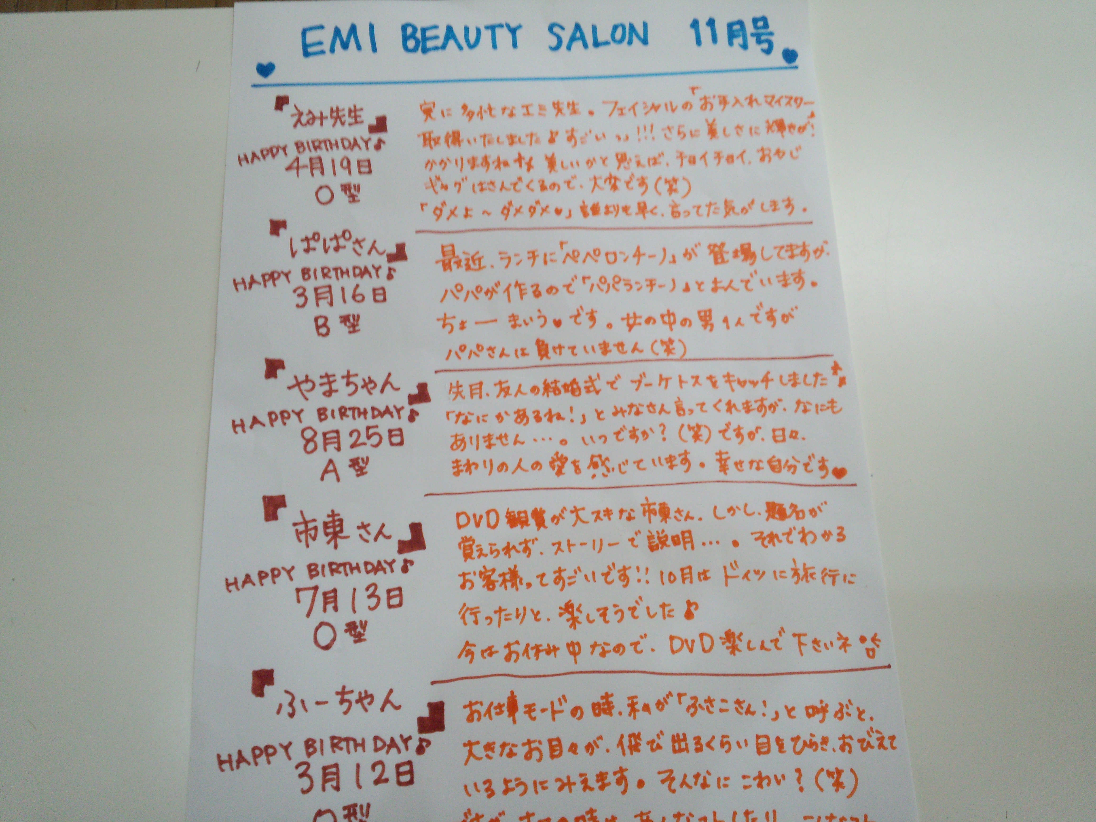 お客様とわたしたちのコミュニケーションツール、そしてお髪の事など色々ためになる情報もかなりふんだんにのせてあります。