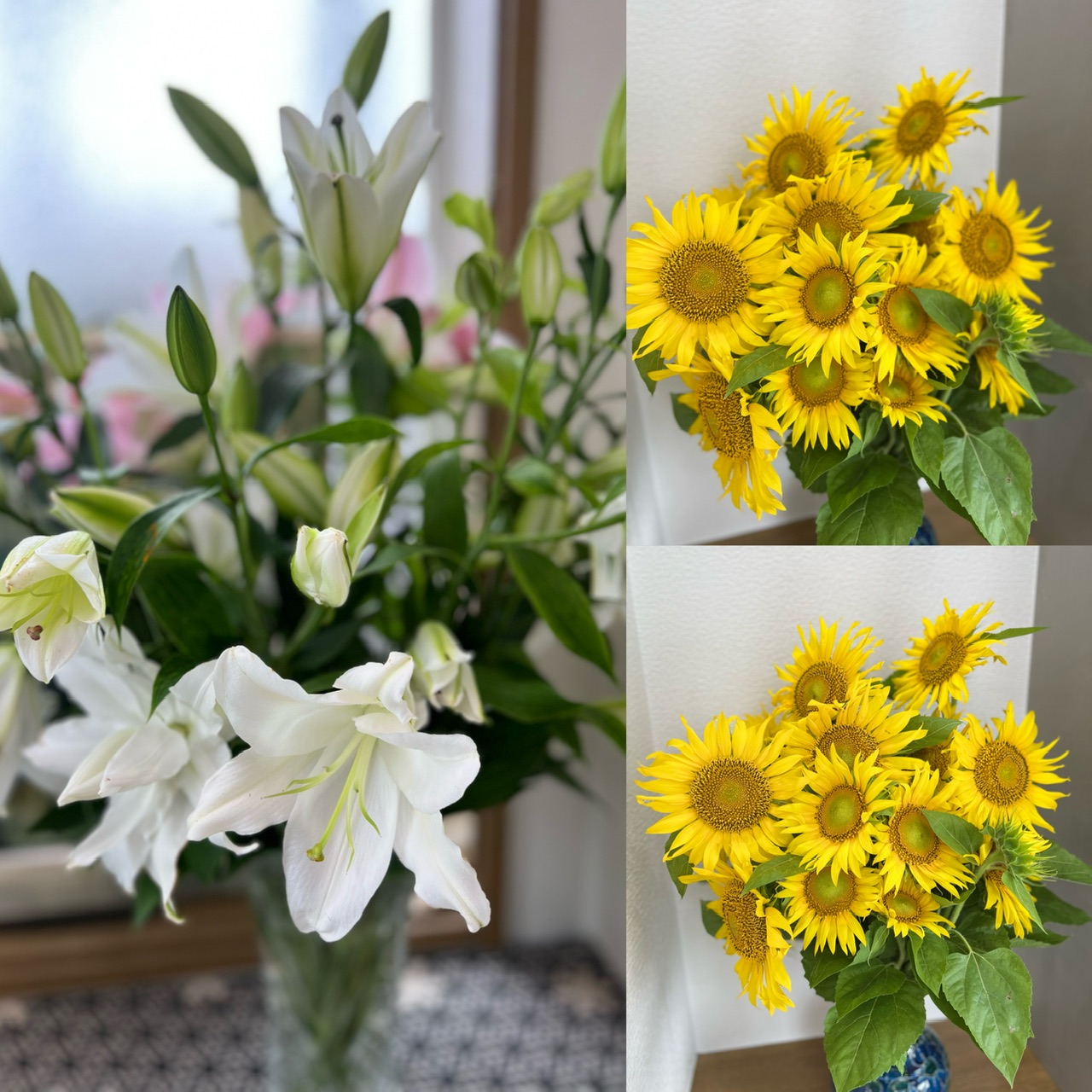 さてエミ美容室、定番の百合はもちろんのこと、ただいま「ひまわり」も仲間入りしています!