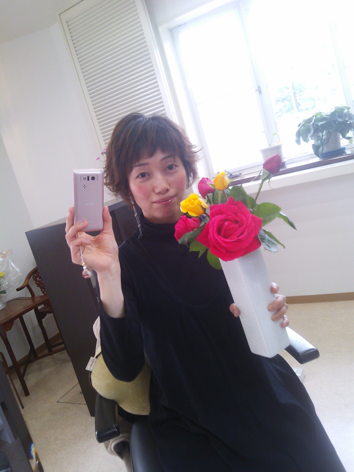 お花をバックに先生キレイ~(≧∇≦*)毎度ながら手前味噌ですみません(笑)