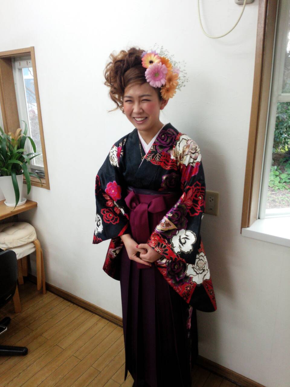 昨年、エミ美容室に実習で入っていた「なつみちゃん」。いよいよ美容学校の卒業式でした。