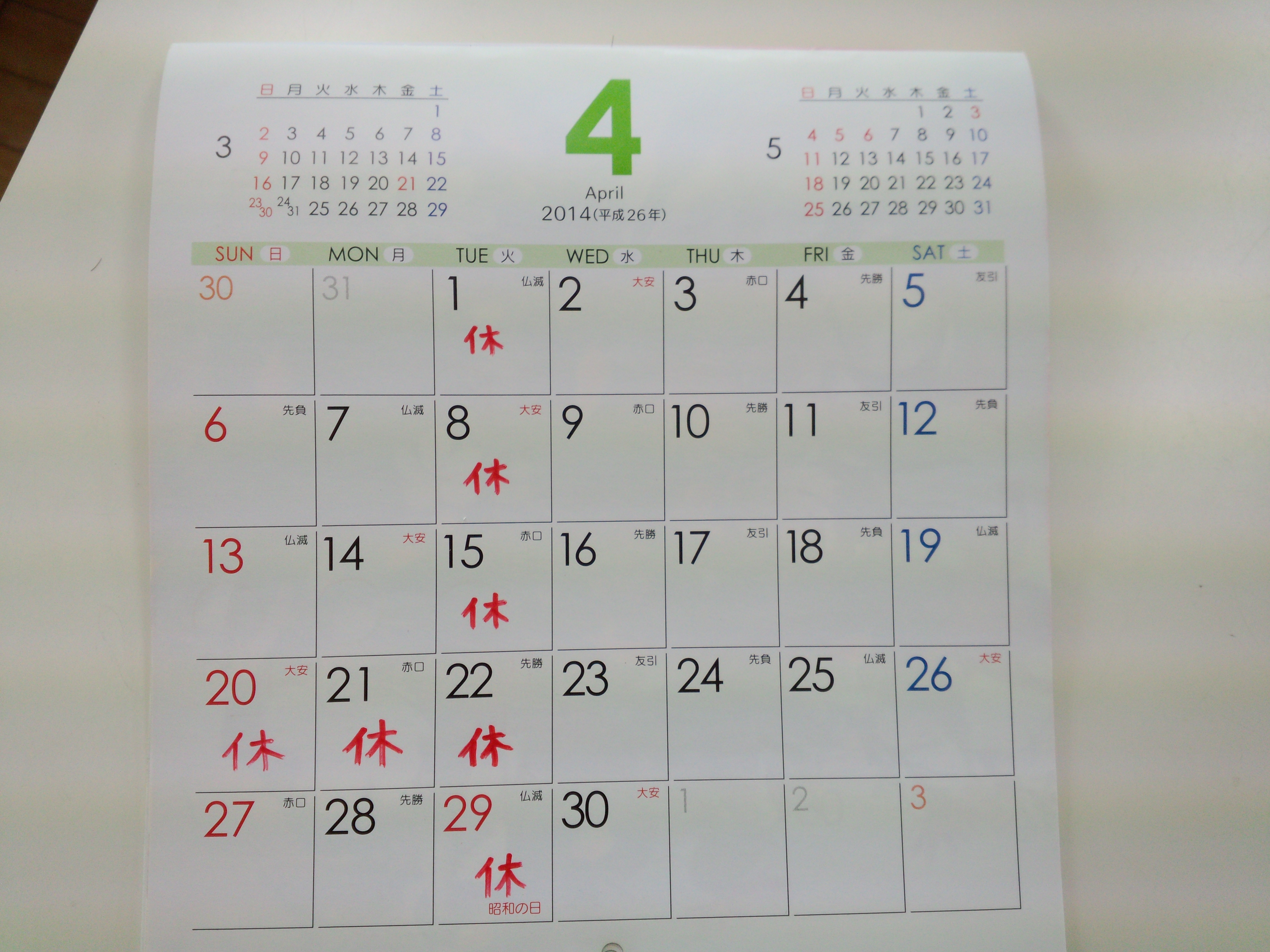 ●4月の定休日●