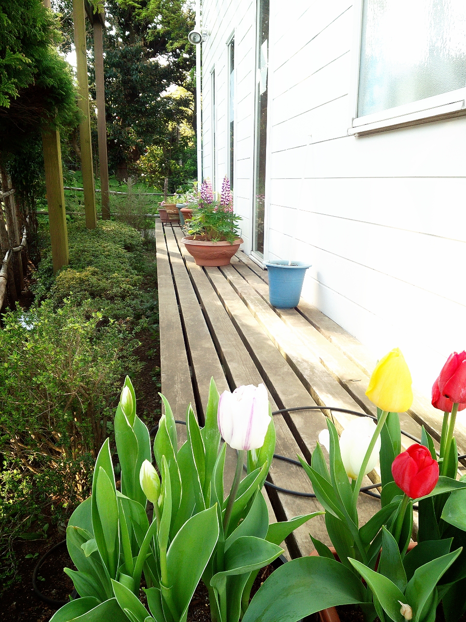日曜日の朝は静かです。花壇に水やりしていたら、早々活動中のたぶん近隣のお父さんが自転車走行しながら「お花がきれいだね~」とお声かけてくださいました(^-^)