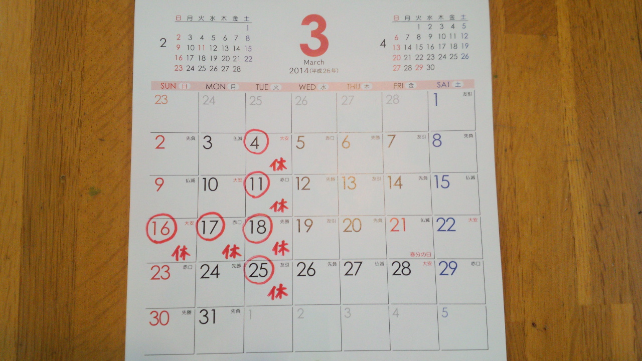 ★3月の定休日★