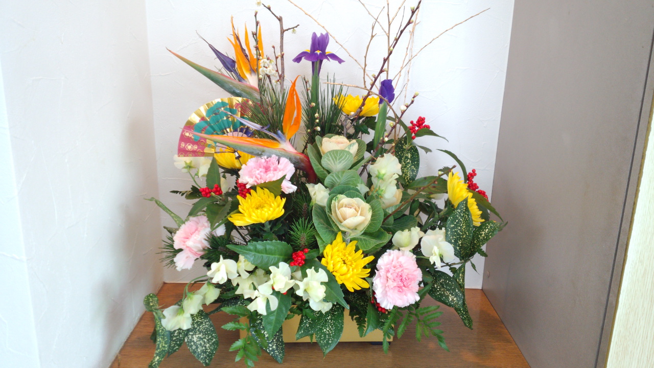 毎年、素敵なお花が全員に届きます。お心遣いありがとうございます。エントランスを華やかに飾ってくれています。 |