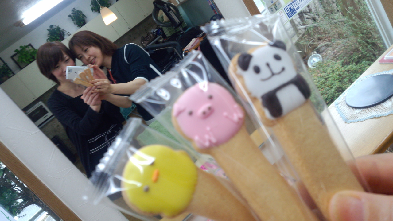 動物クッキーを撮るつもりがなにげに後ろの2人がメインになっちゃってる(笑)