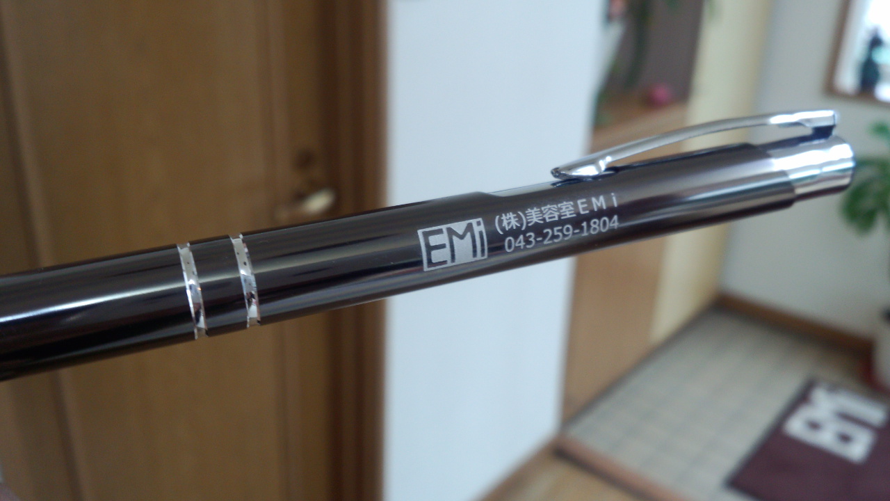 是非みなさん、このボールペンをお友達の前でロゴを見せながらお使いくださいませ(笑)「そのペンお洒落ね」の一言があった際にはすかさず「今エミさんで配ってるよ」とお願いいたします(笑)