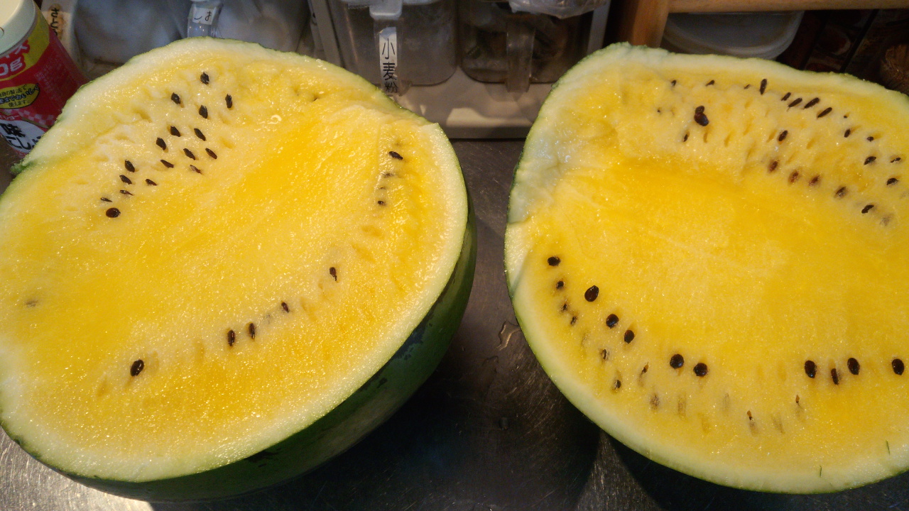 ワクワクしながら、スイカカーット!うわー黄色だー!赤だと思ってたからなんだかテンション↑↑↑