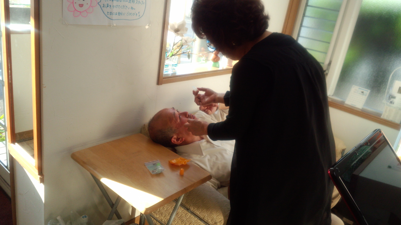 最近目の調子の悪いパパさん。日に何度か目薬をささなくてはいけません。