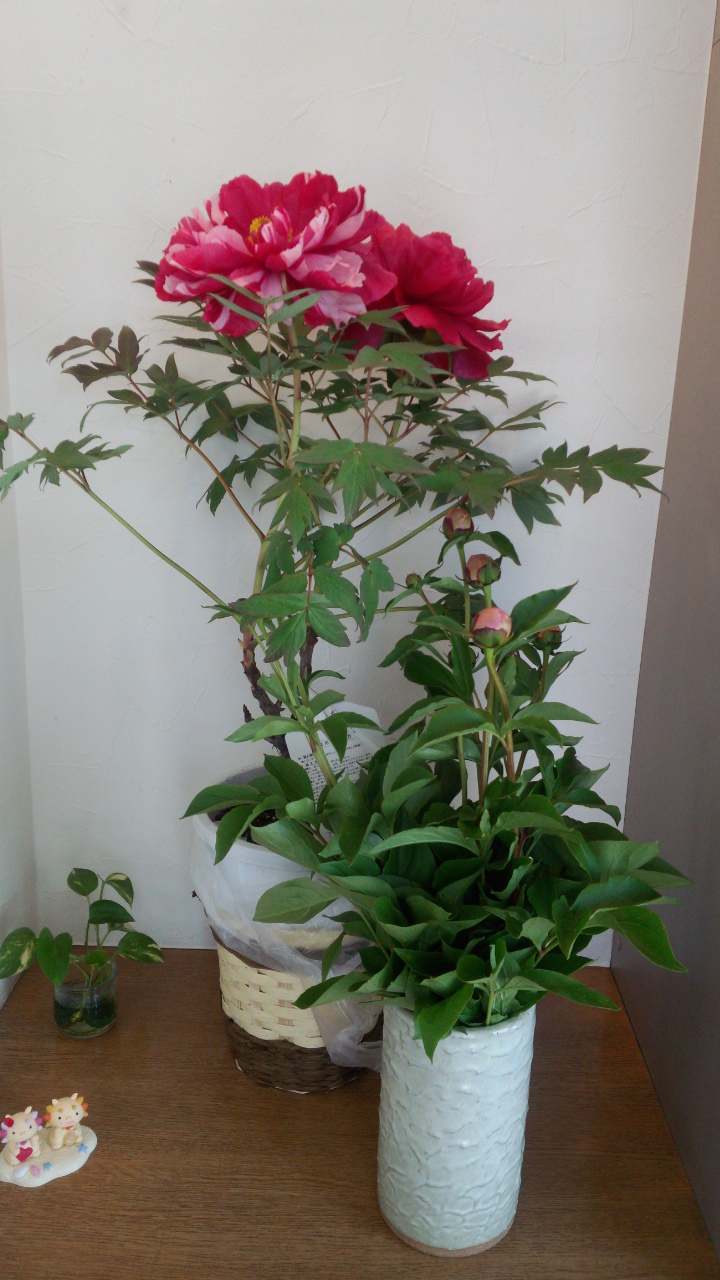 新潟の旅で買ってきてくれた牡丹とシュクヤクです。 |