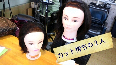 国家試験用のウィッグをカットするためにスタンバイ。中々混んでいてカットに入れない・・・。