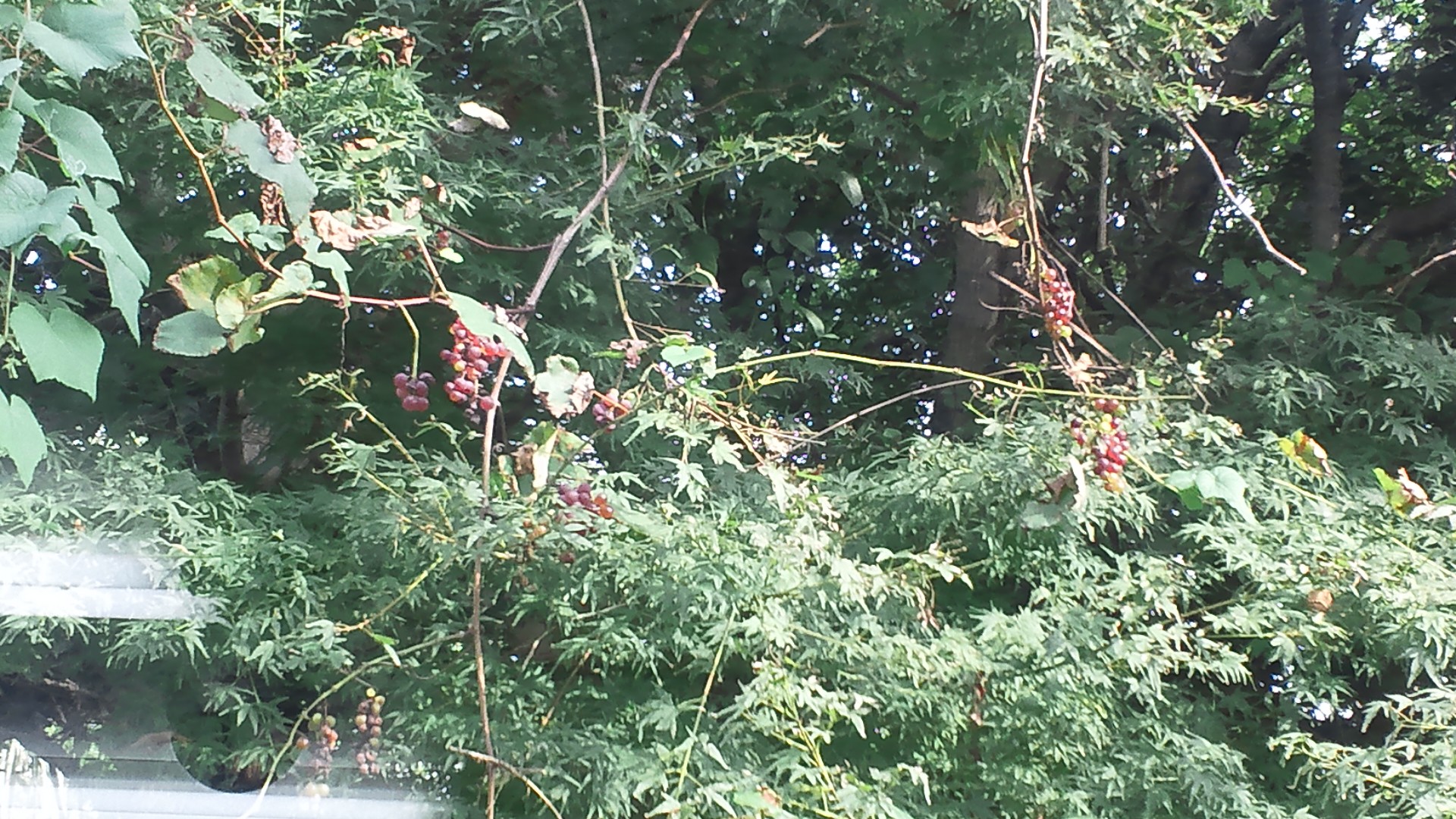さて、店の出窓からは隣のお庭の新緑や紅葉が見えて楽しめますが今は美味しそうなぶどうがなっていてよそんちのだけど気になってしまうのでした(*'▽'*) |