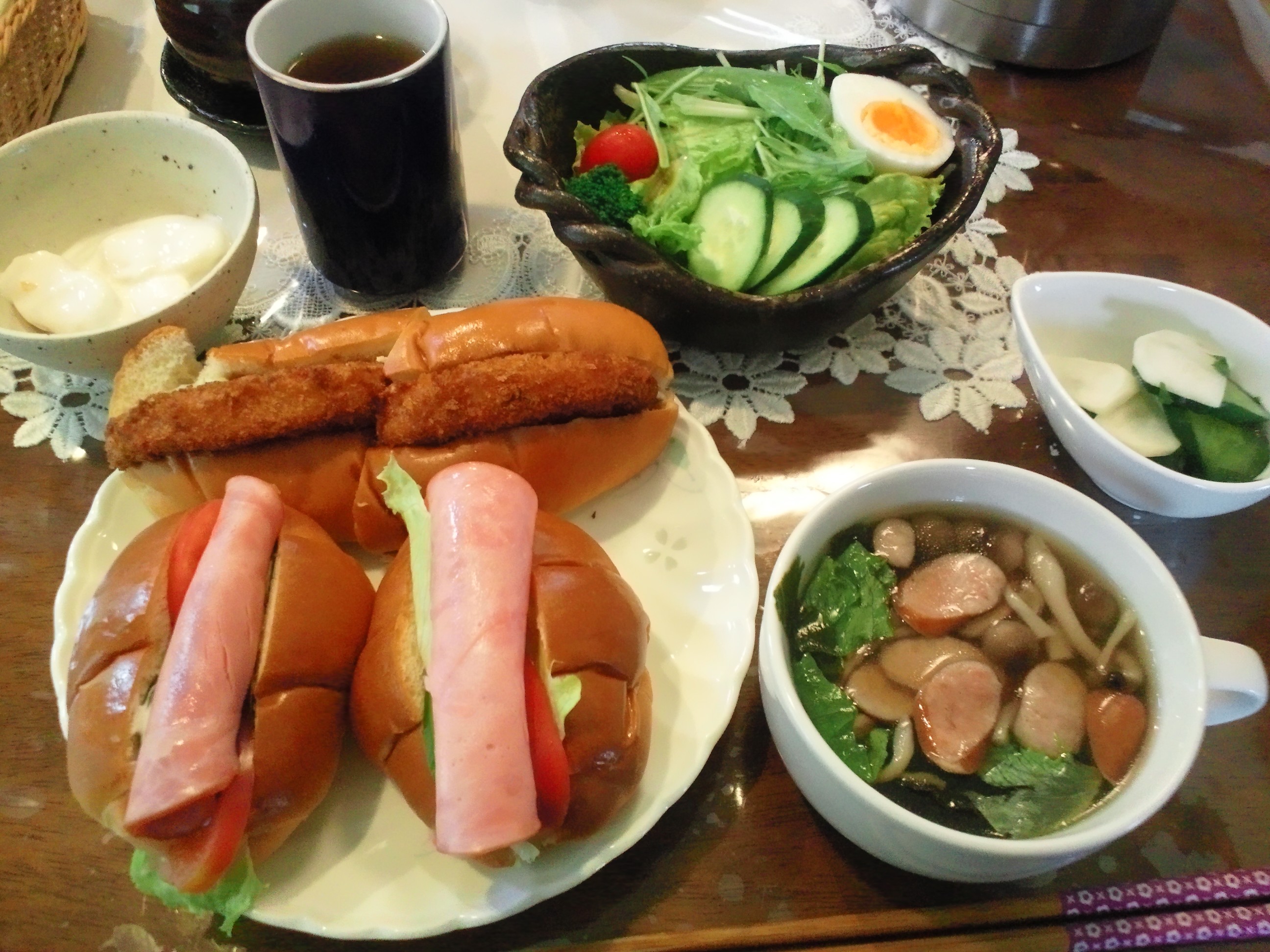 今日のランチは「コロッケサンド」です♪大丈夫、お客様の分はもう少し上品ですから安心してください(笑)