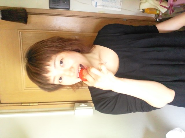 おいしそうにイチゴを食べるみちよさんです(*^▽^*) |
