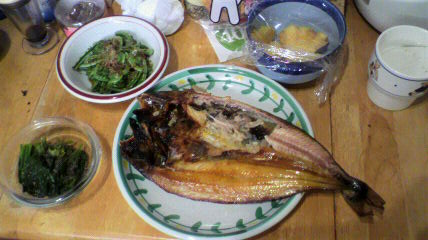 先生が買ってきてくれた北海道の「ほっけ」です。すごーい大きくて脂がのっていて最高にうまい!!!