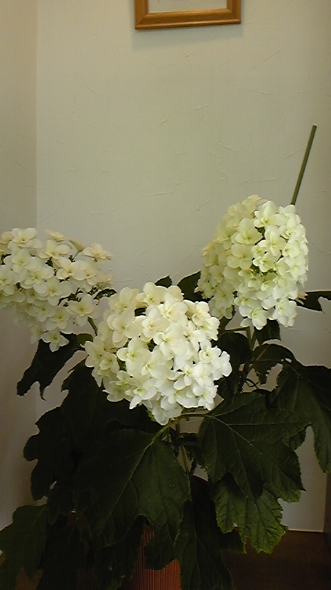 さて今月ももう10日です。紫陽花があちこちで咲いていますね。この写真は先生が挿し木して育てた「かしわば紫陽花」です。みなさん、買ってきたと思うらしく先生が育てたっていうと大変おどろきます。