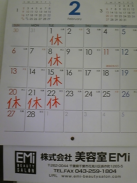 2月の定休日です♪