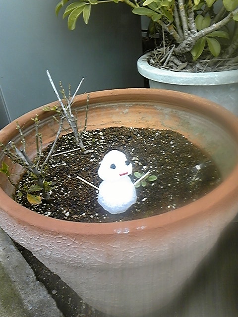 で、暑いみたいなので雪だるまは外へ。