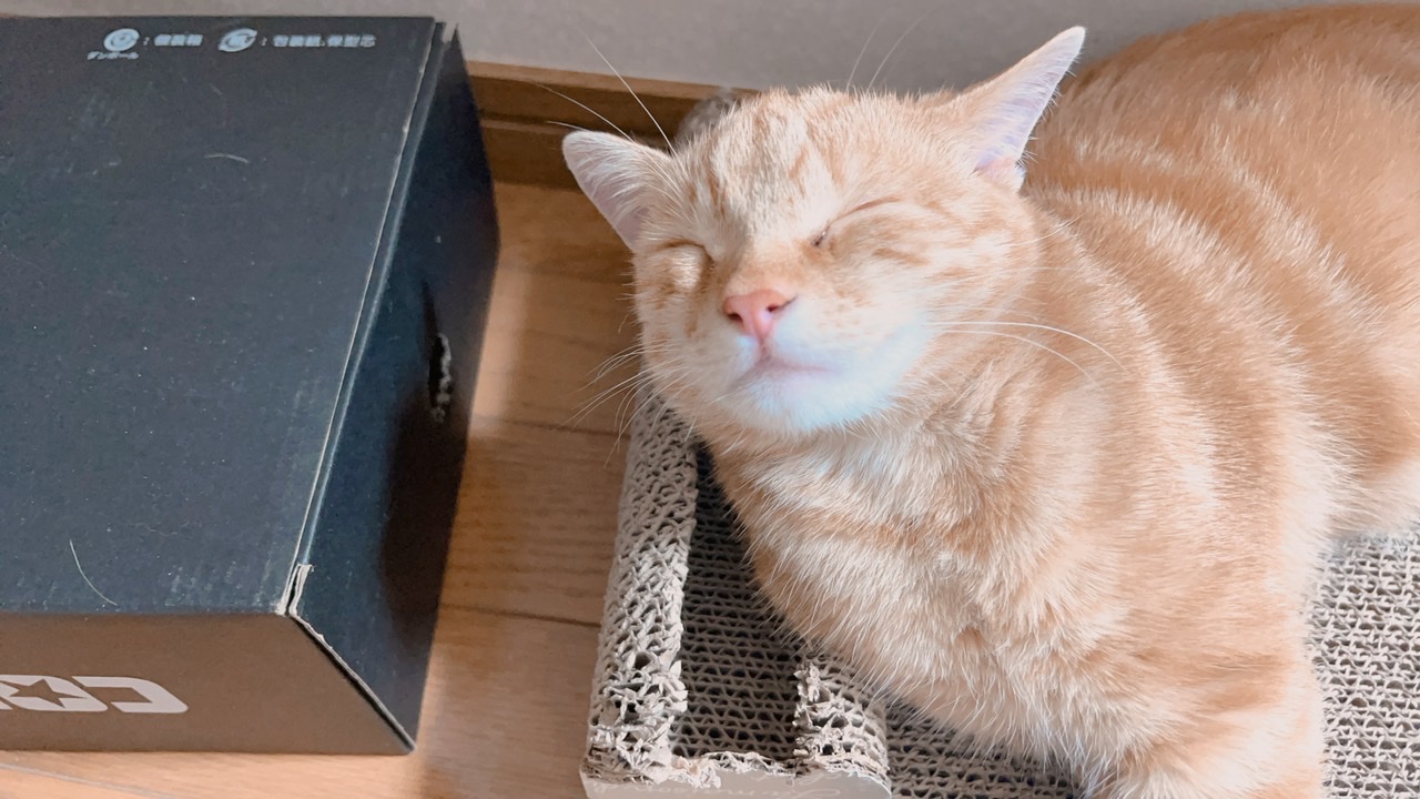 こないだ買ってきた爪研ぎベッドが大変気に入っているうちの猫。