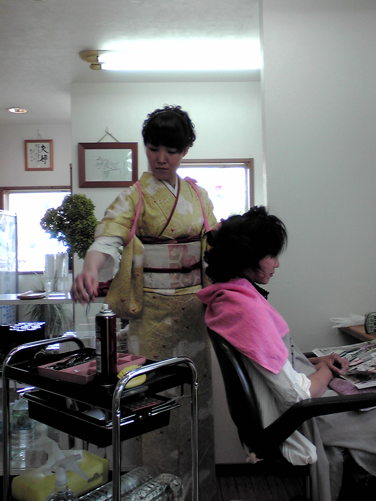 この日お店はお休みでしたが友達の結婚式があり先生にお支度してもらいました。暑いけどお祝いの気持ちを込めてお着物で!