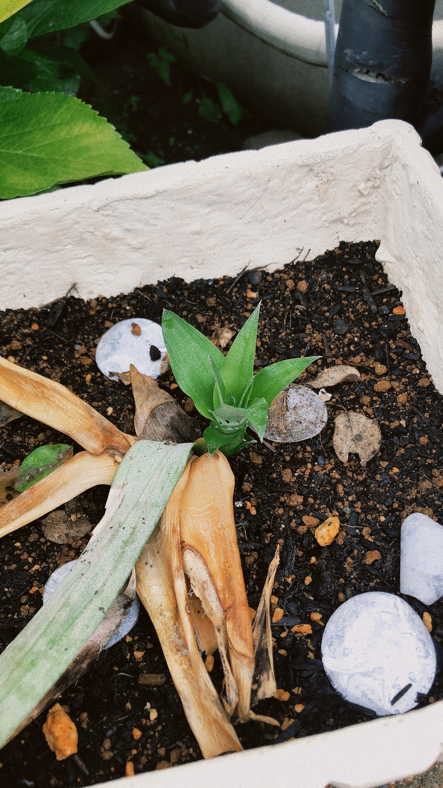 ですが先日、外に置いておいた先輩の鉢から、新しいパイナップルがなってるではありませんか!!!