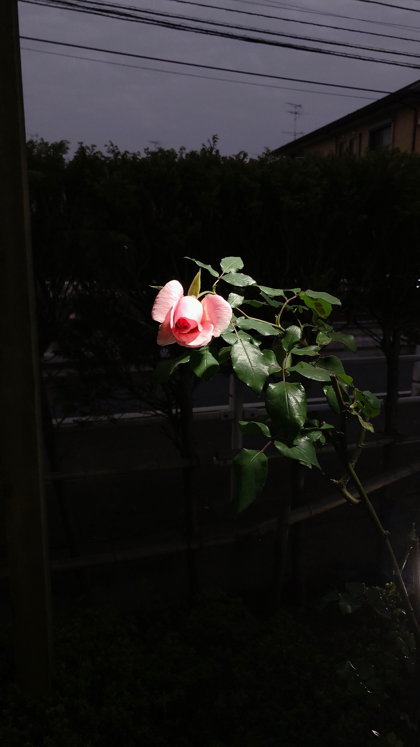 お店を照らす為のスポットライトが、まるでこの薔薇の為にあるように照らしています