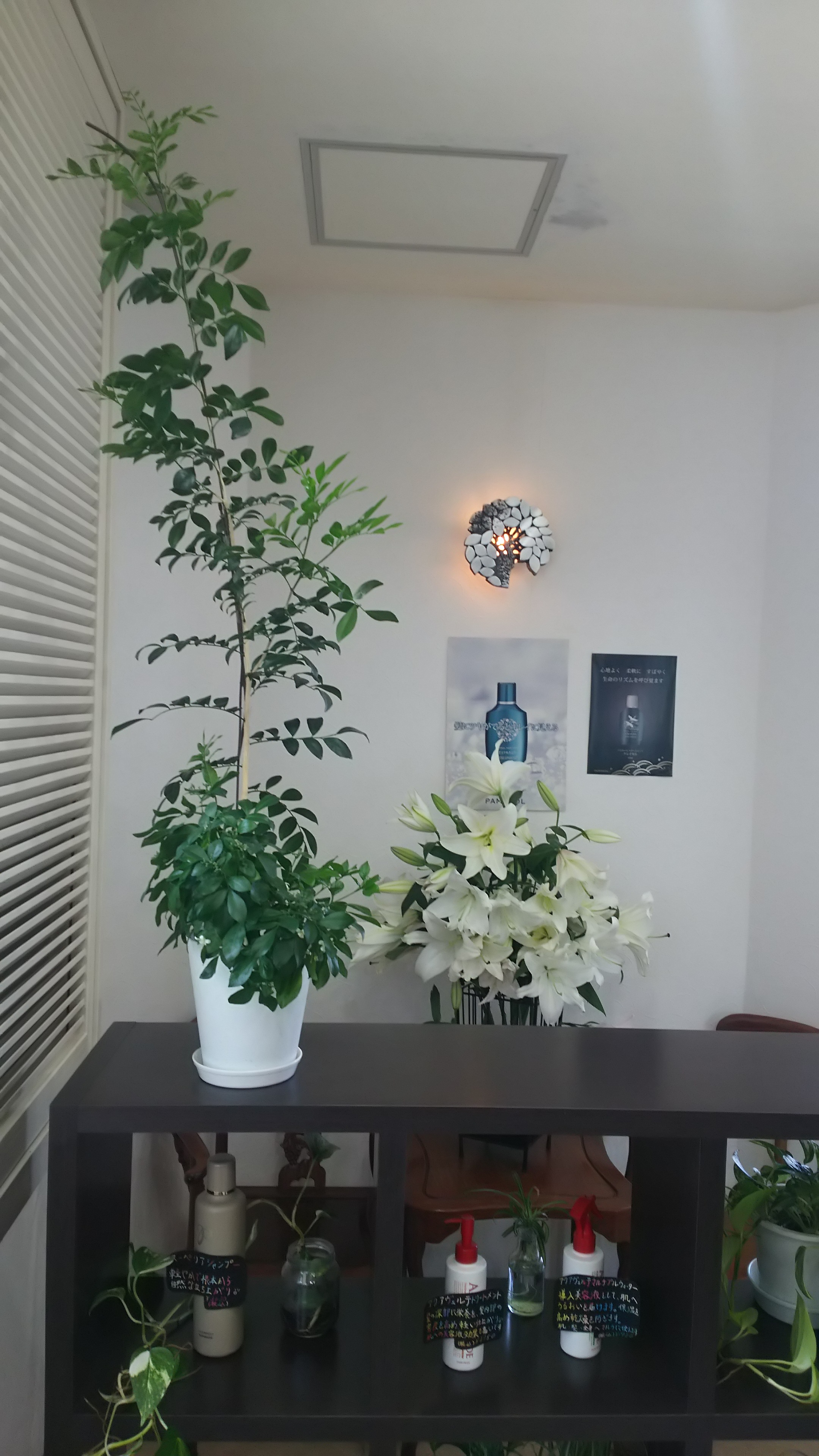 作新台店内も本店共に、観葉植物があちらこちらにありますが、100均観葉のシルクジャスミンが大きくなりました♪
