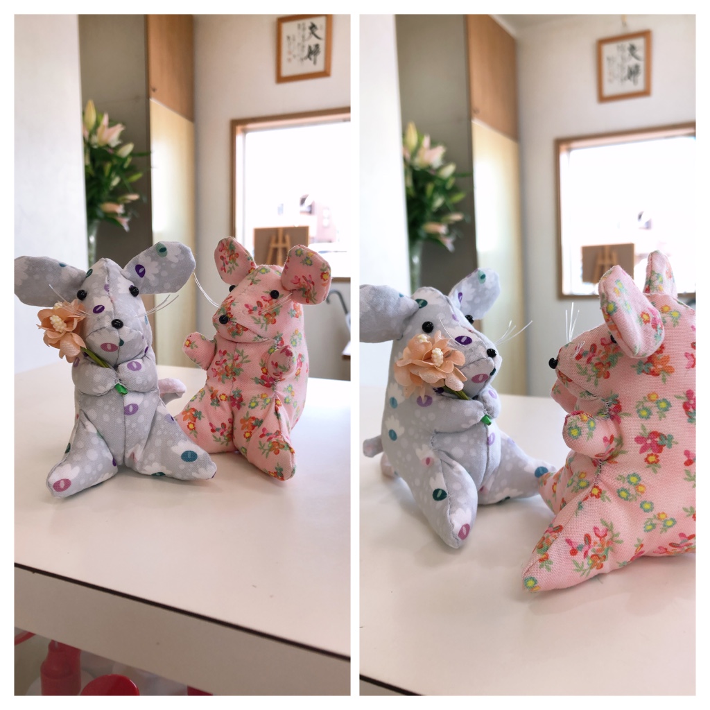 今年子年で、お客様が可愛いねずみちゃんのお人形を作ってくれたのですが(先生がチュー子と名付けたあの子です笑)