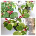 先日報告したポインセチアの『トミー』伸び過ぎたから切ってお水につけておいたら、根っこが出てきてこれまた赤く色付いて素敵植物♪