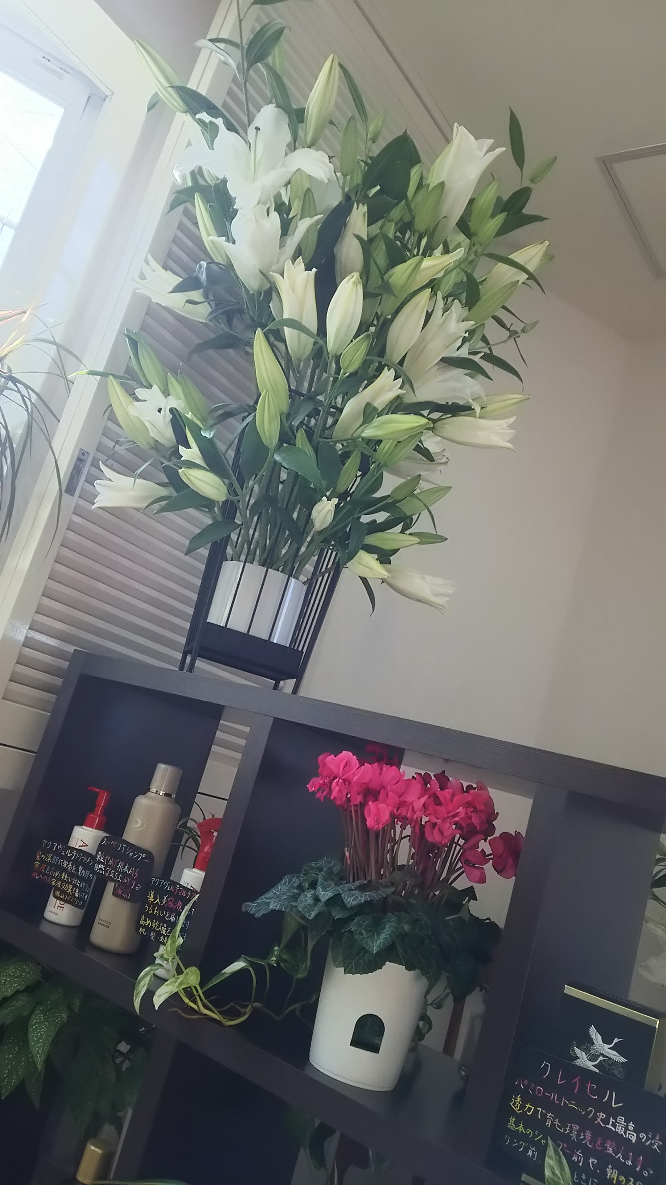 ユリがこんなに華やかなのに、シクラメンもシーズンものだから良いですね(^-^)