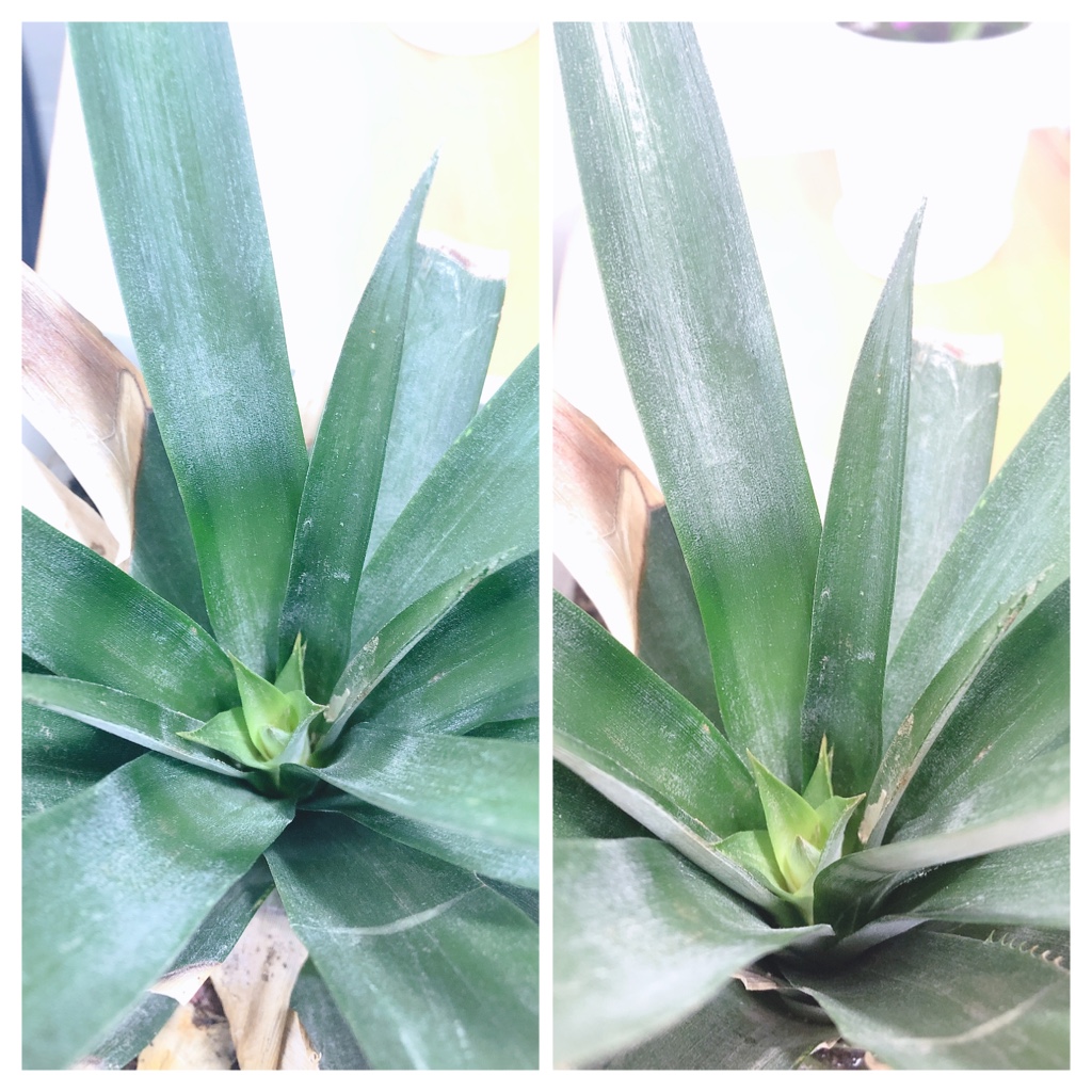 今朝パイナップル先輩チェックをしたら、なんと!真ん中から新しい葉っぱがでてきてました!
