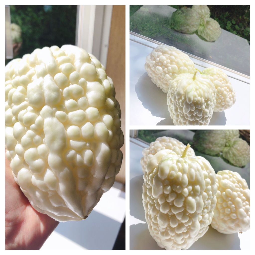 今日はパイナップルの師匠がご来店くださいました!しかも、大きな白いゴーヤを持って!