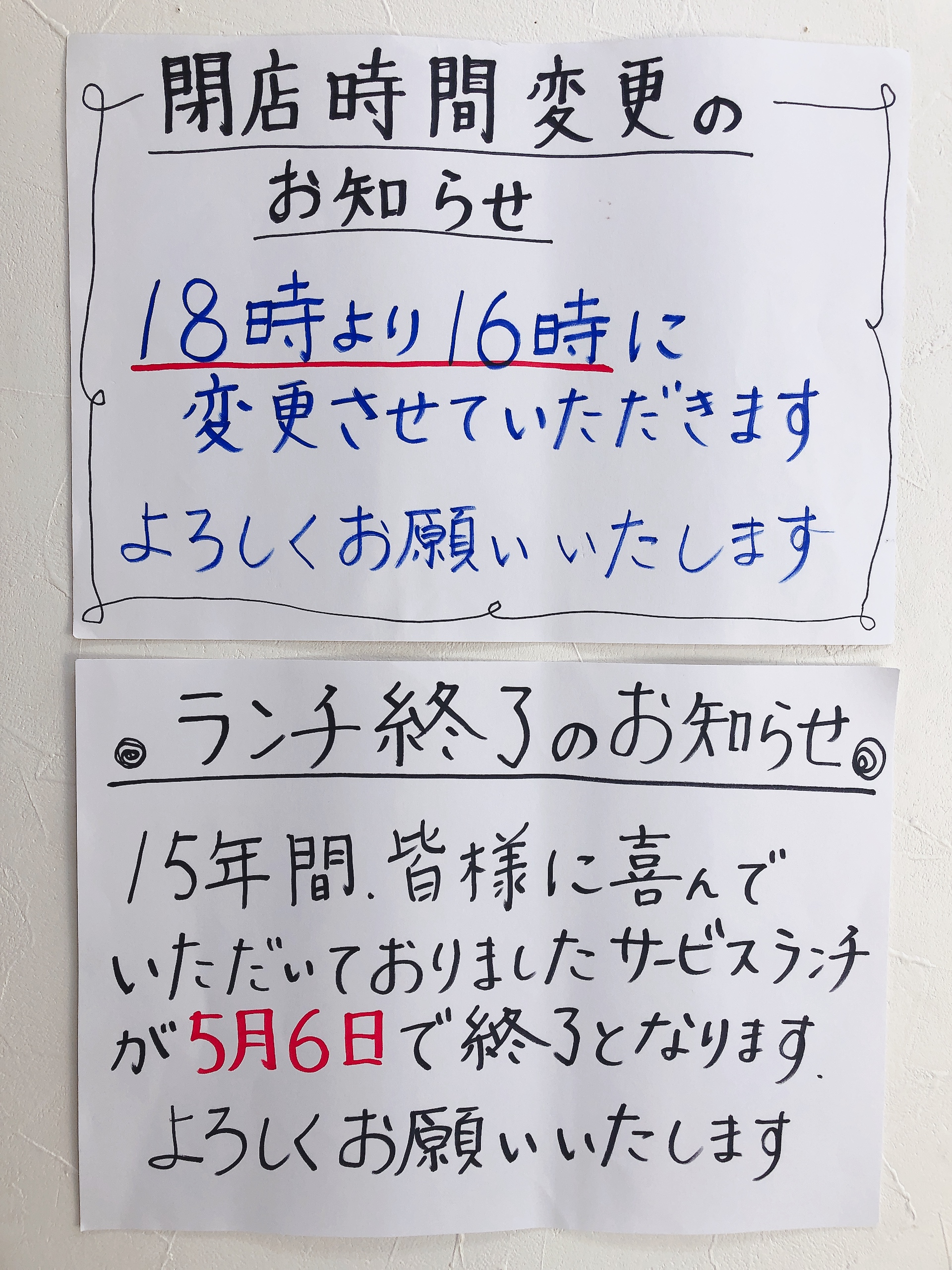 パーマ、カラーのお客様へのランチサービスを明日5月6日で終了させていただくことになりました
