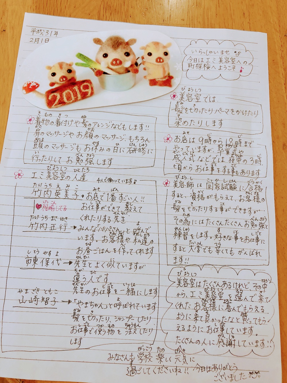 二回目の町探検では美容室なのに二階にレストランがあった!という事が印象づいたようです(笑)