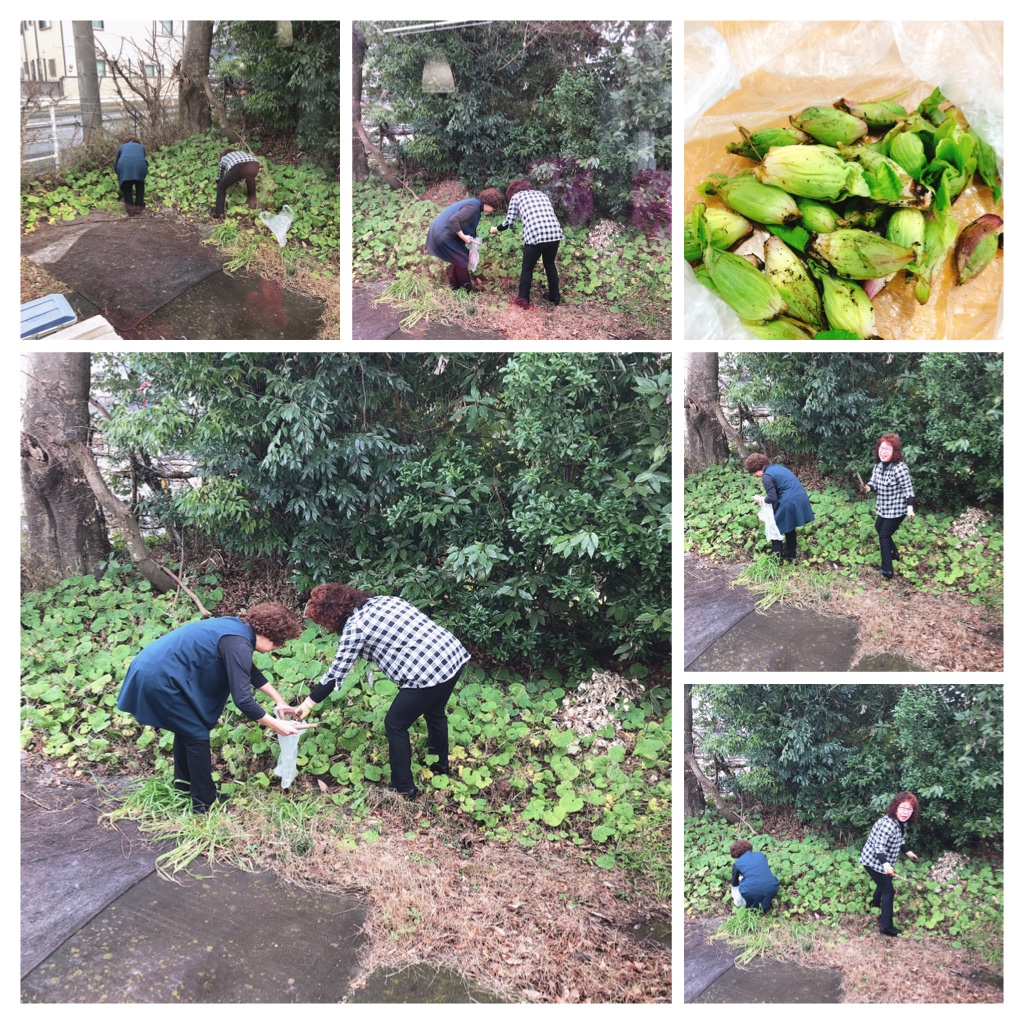 ん?どこに?と見ていたら、うちの熟女2人仲良く〈ふきのとう〉採ってました(笑)