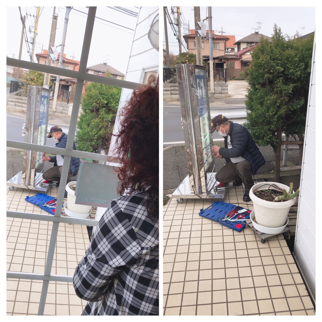 お店の外看板のキャスターと電気を交換してくれました!