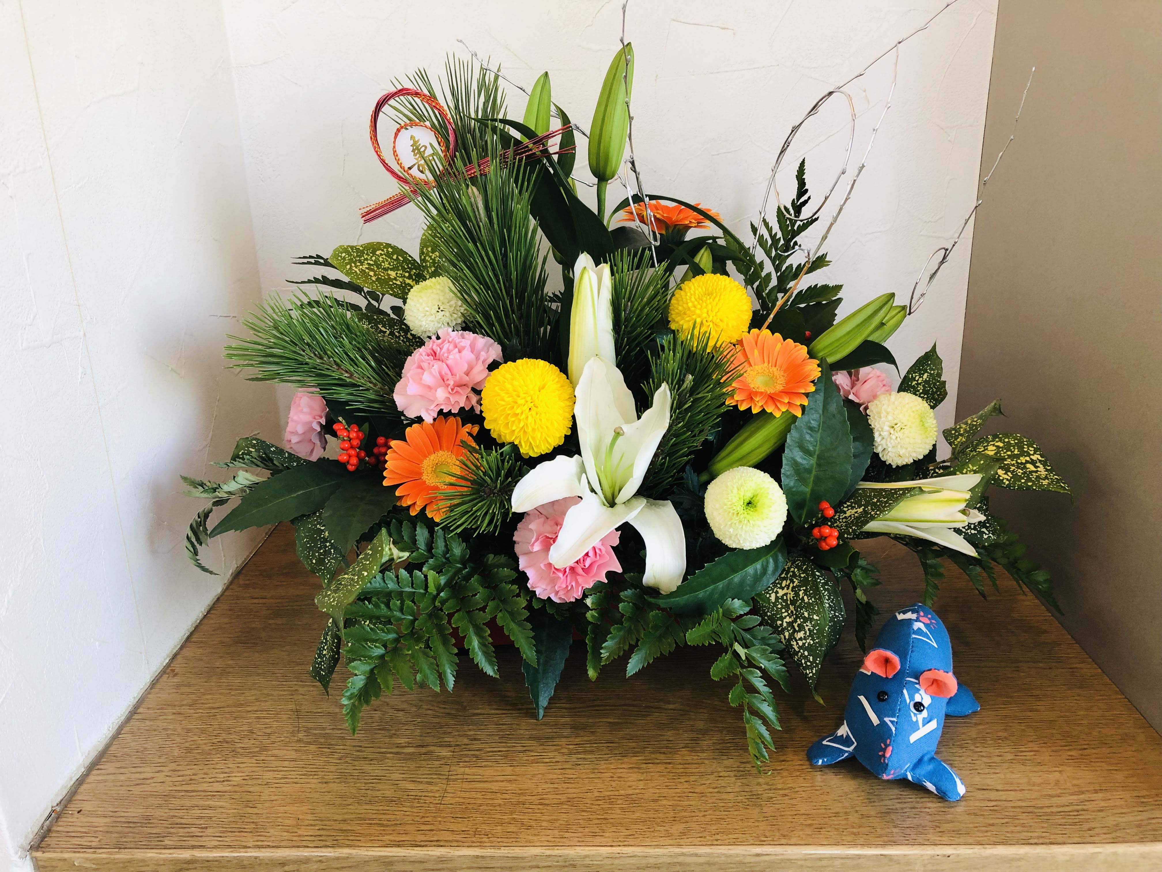 毎年お正月のアレンジ生花をお客様からプレゼントしていただいております。いつもありがとうございます♪