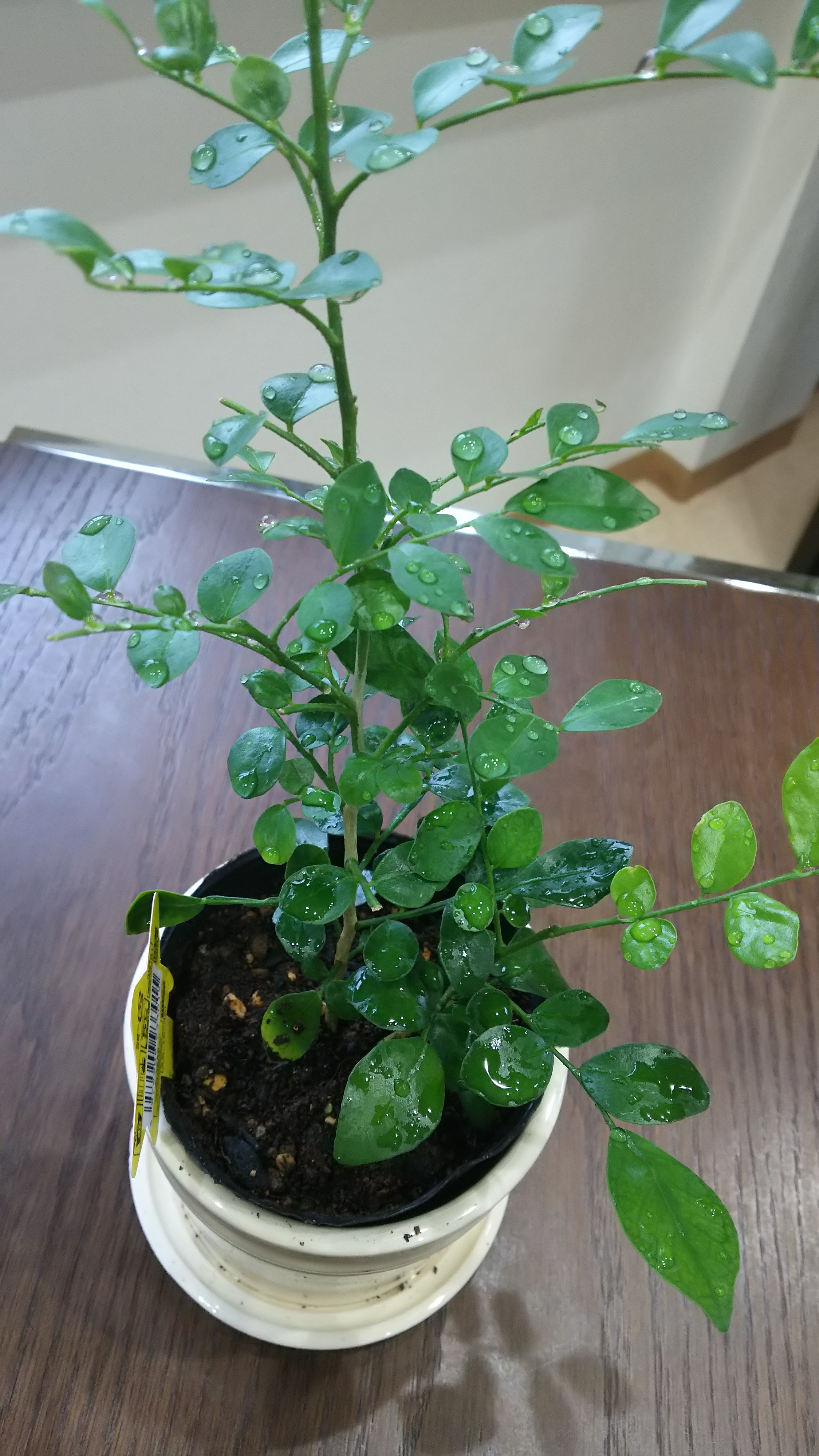 以前親友の結婚祝いに観葉植物をリクエストされ、考えたすえに選んだゲッキツ別名シルクジャスミン☆を、自分も欲しくなり探してきました。私のは苗なのですが、育つと花が咲いて良い香りなんだとか(^-^)