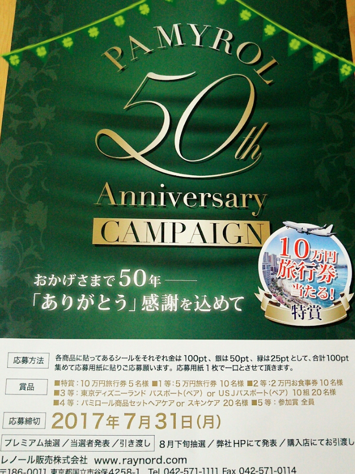 今回はパミロール50周年記念感謝祭といたしまして、豪華な懸賞が用意されています♪