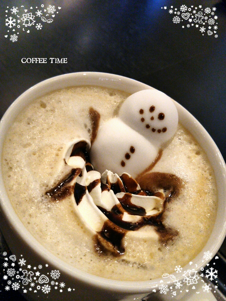 そして、可愛いスノーマンラテで暖まる。