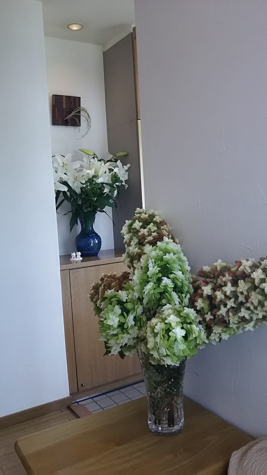 明日から三連休なので、窓際から、通るお客様をしっかり癒してさしあげるようアナベルに言ってあります(* ̄∇ ̄*)