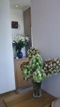 白くて可愛いので、店内に飾る事にしました。ひらめきで活けたので流派は「右脳流」←今考えた…(笑)