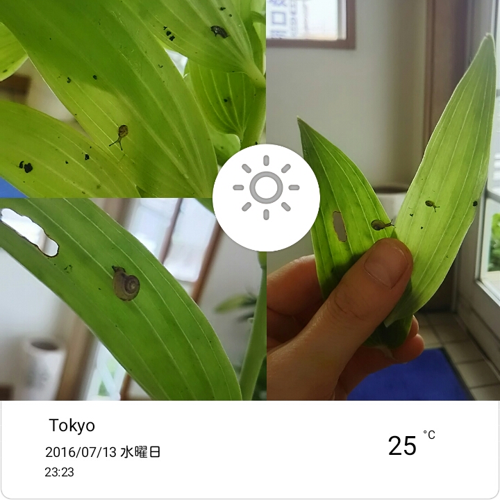 今朝、先生がユリを持ってきてくれたから生けてたら、ちっちゃいかたつむりがいて「可愛い~(*≧∀≦*)」って興奮してみんなに見せてたら、今度はもっとちっさいかたつむりがいて、私は朝からこの赤ちゃんかたつむりに癒されました~♪